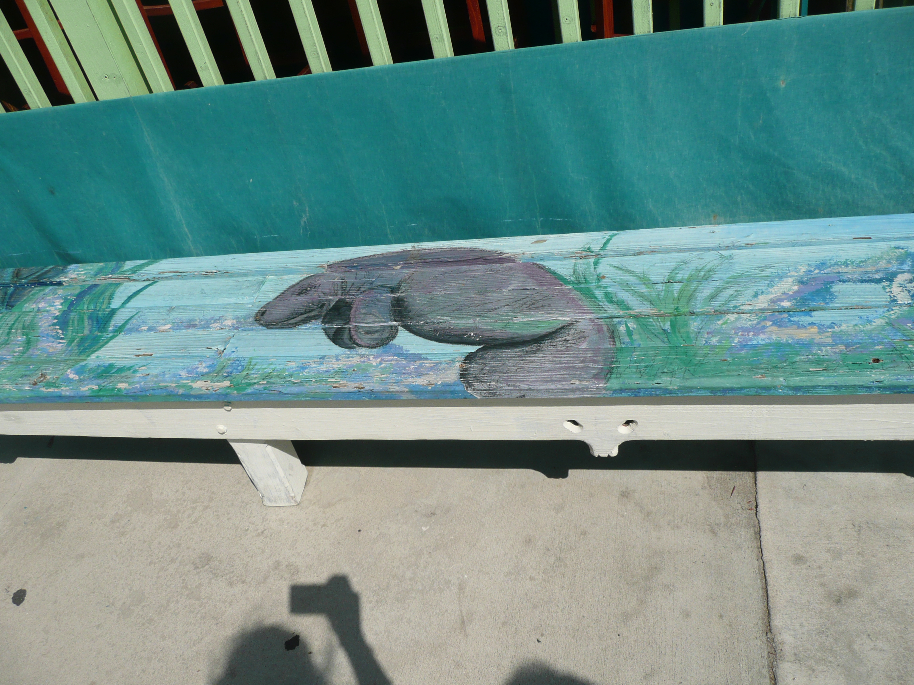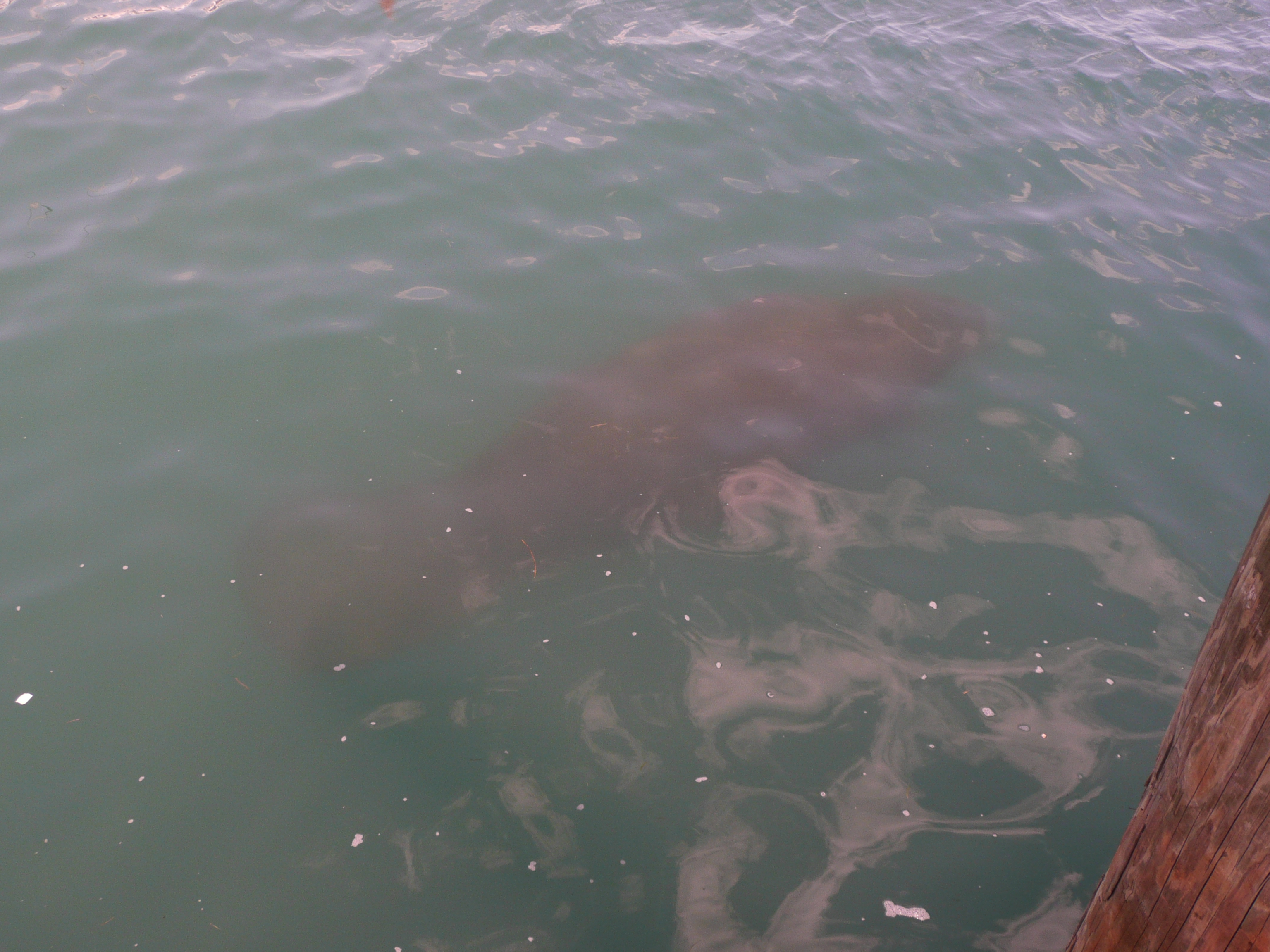 As we wandered along the waterfront, three manatees appeared, swimming alongside the wall. There was a mother and calf and another large manatee that swam on alone. The mother and calf stayed with us for a while with the baby surfacing for air far more than its mother. Sadly, the calf already showed evidence of an encounter with a boat propeller on it’s back.
