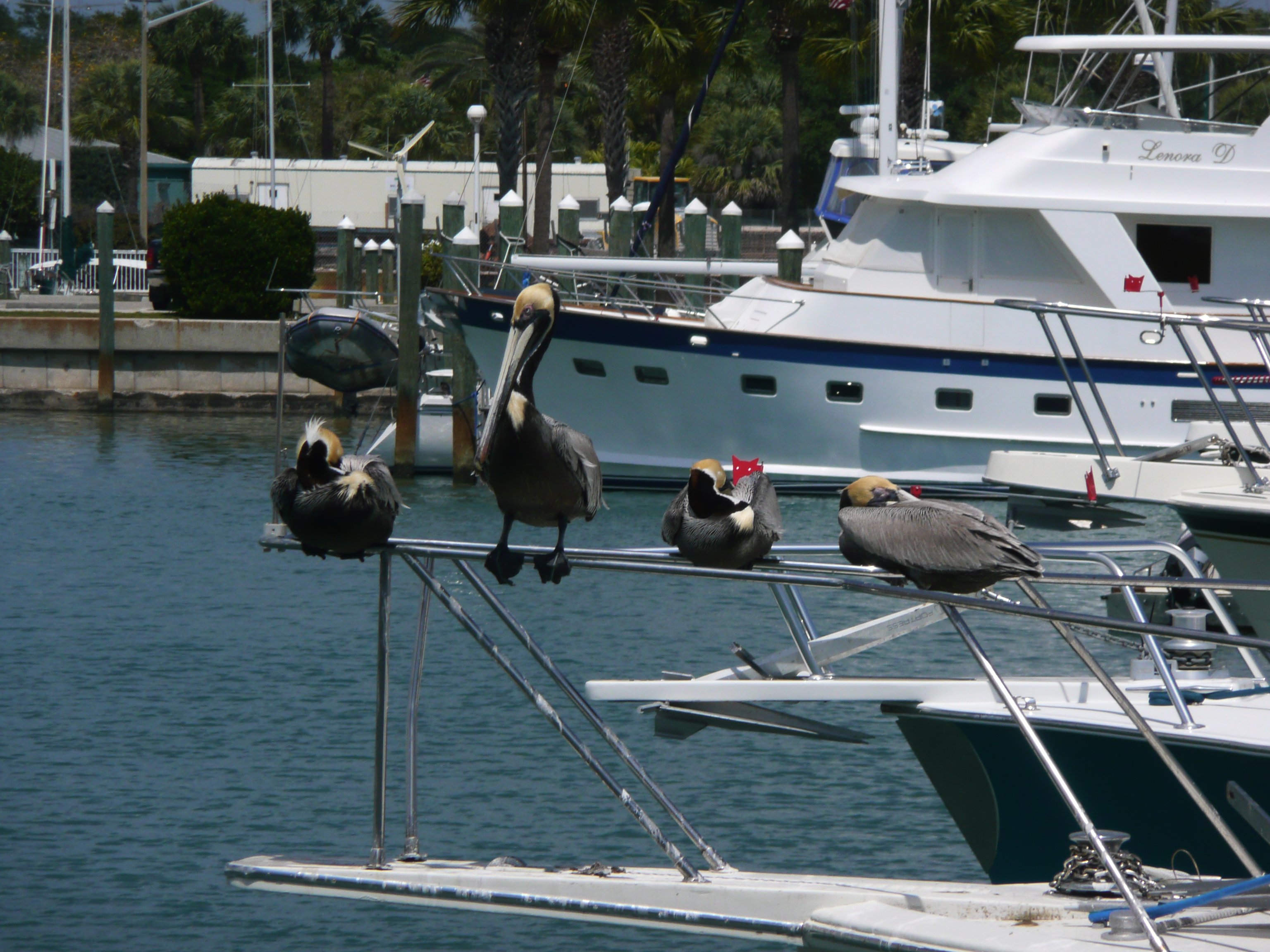 After lunch we headed out to the marina, and particularly the wooden jetty that surrounded it. We heard a giant splash before seeing a monstrous sized manatee gliding past the jetty. Pelicans perched on any and every available pole or vantage point. A short while later and another manatee passed by – we had seen five in the space of an hour! It was still March when we made this journey so we were happy to bear out our own blog about manatee spotting, posted just before travelling!